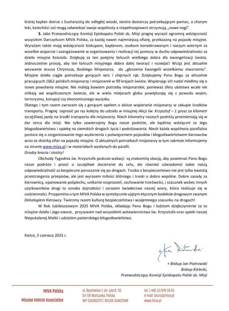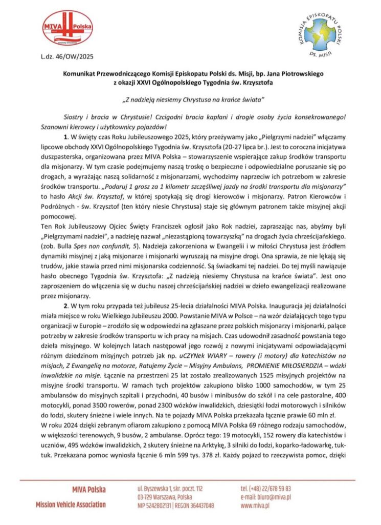 W niedzielę, 20 lipca, rozpoczął się w Kościele Ogólnopolski Tydzień św. Krzysztofa. To kolejna okazja, aby podziękować Panu Bogu za szczęśliwe podróżowanie, a także wesprzeć Misjonarzy. Ruszamy z Akcją Św. Krzysztof 1 grosz za 1 kilometr na środki transportu dla Misjonarzy.